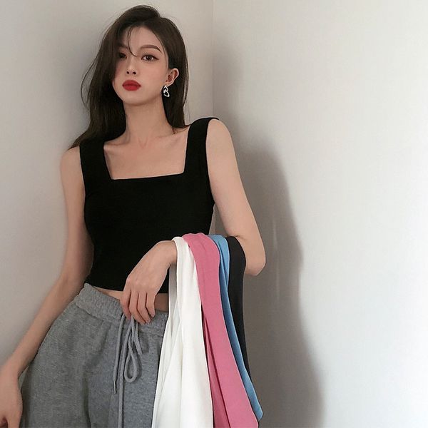 Whitening short style navel-exposing pure cotton tube top square collar slimming cover side breasts without wearing a bra hot girl outer wear suspender tube top female