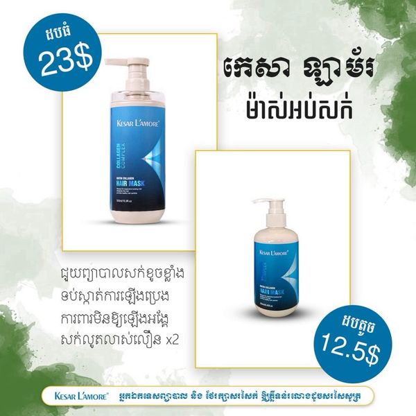 Kesar L’amore Biotin Collagen Hair Mask - ម៉ាស់អប់សក់ •ជួយព្យាបាលសក់ខូចខ្លាំង •ទប់ស្កាយ់ការឡើងប្រេង •ការពារមិនអោយឡើងអង្គែ •សក់លូតលាស់លឿនគុណនឹង2 ចំណុះ 500ml