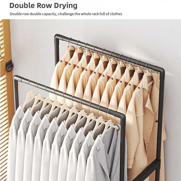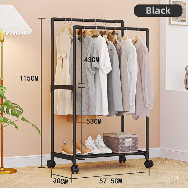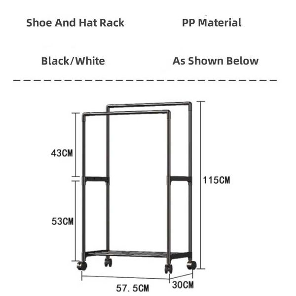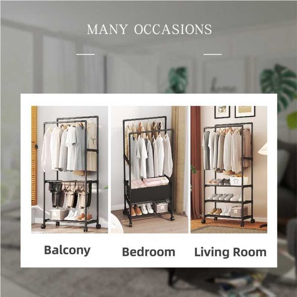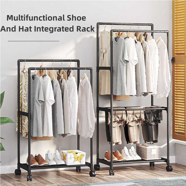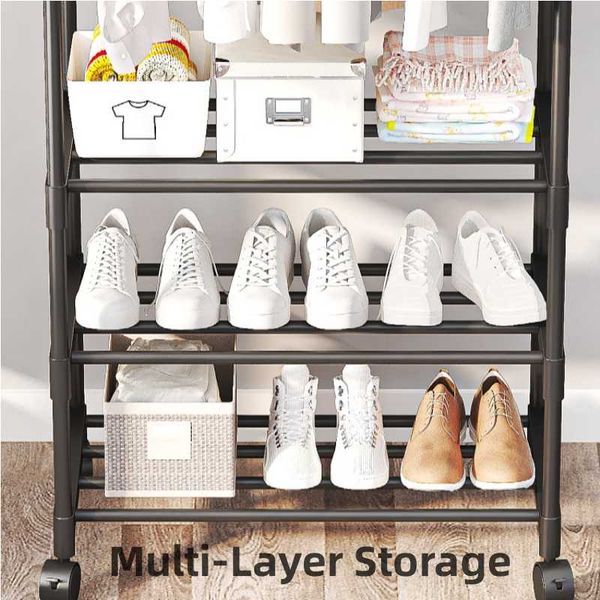 Double Rod With Wheel Drying Rack,Multi-Layer Storage Drying Rack,Shoe And Hat Rack,Multi-Functional Storage Drying Rack