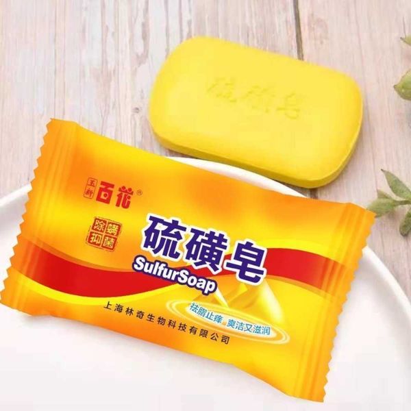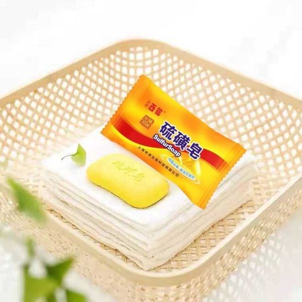 Summer sulfur soap for cleaning, mite removal, household face washing and bathing. Authentic domestic soap for bathing and bathing