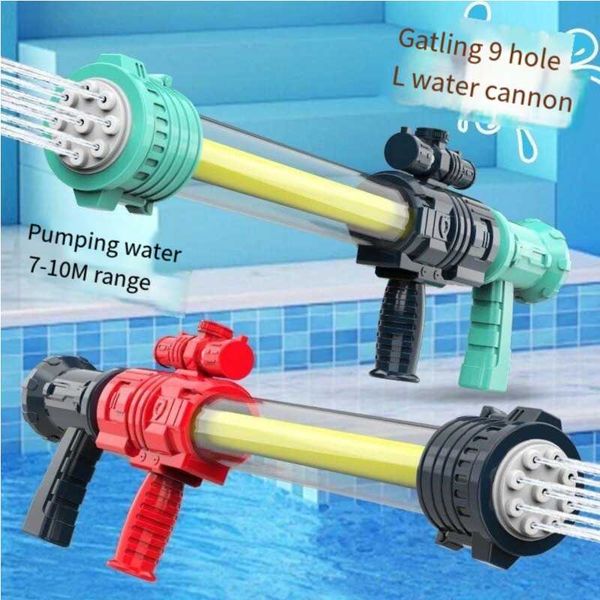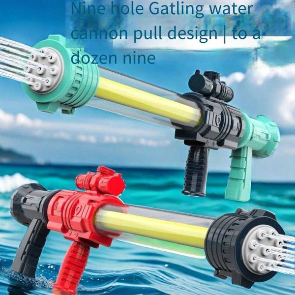 Hot selling children's water gun toy Gatling nine hole pull-out water gun Ø water spray gun for boys to play in water battles