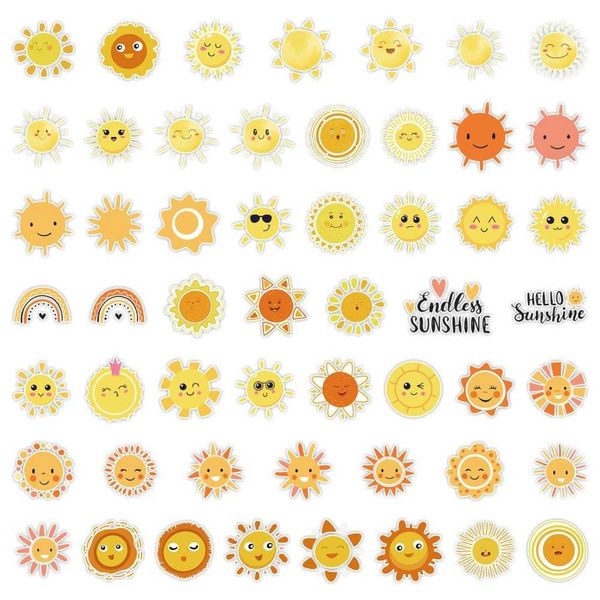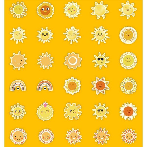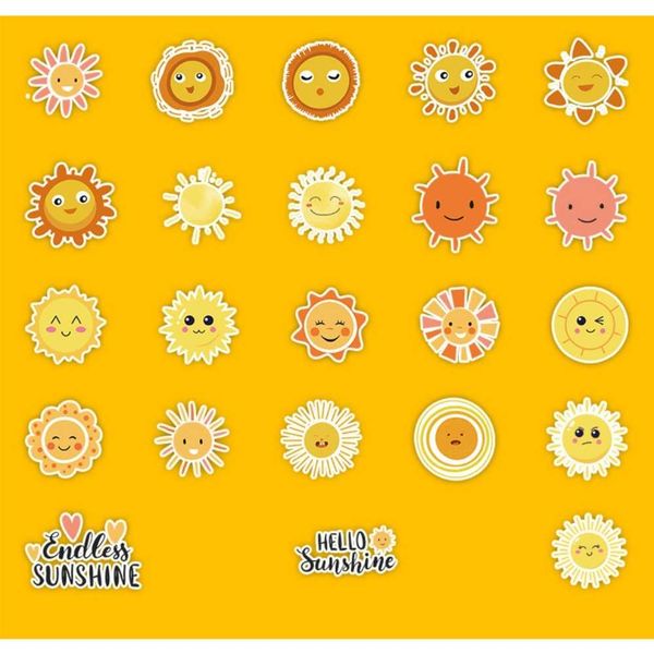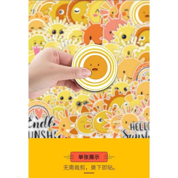 50 Sun Cartoon Stickers, Car Mobile Phone Water Cup Decoration Stickers, Waterproof Creative Kids Stationery Stickers