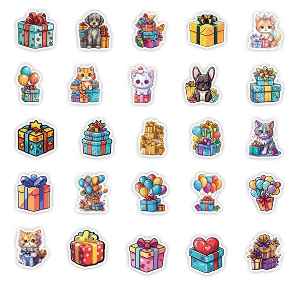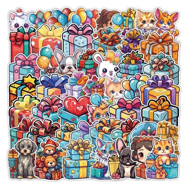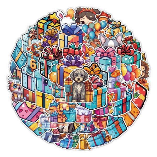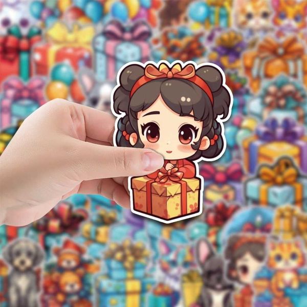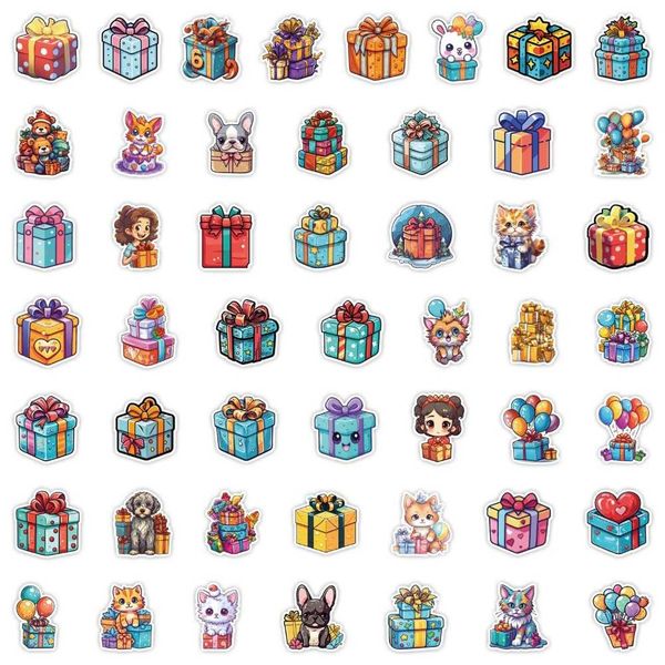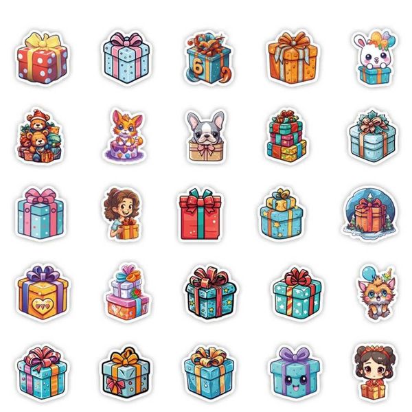 50 Cute Gift Box Stickers, Luggage Waterproof Decorative Stickers, Children's Handbook Stickers