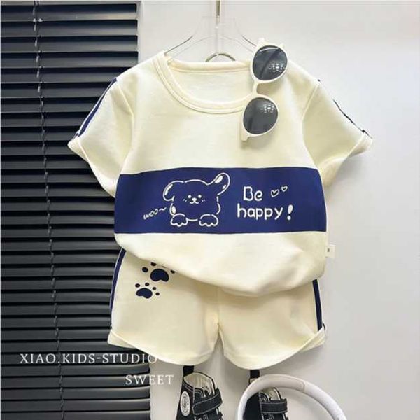 2024 new children's short-sleeved suit striped girls and boys T-shirt summer baby clothes Korean version children's clothing