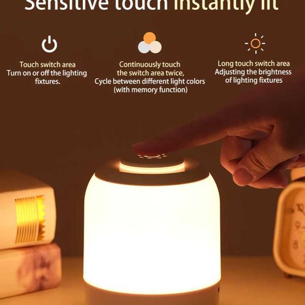 LED Night Light Touch Lamp Table Lamp Bedside Lamp Bedroom Lamp with Touch Sensor Portable USB LED Desk Lamp Light for Kids Gift