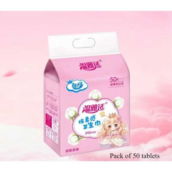This pure cotton breathable sanitary napkin for daily use, made entirely of cotton and suitable for postpartum women and students, with 50 pieces of soft sanitary napkins that prevent side leakage and are 245mm long, is truly a caring guardian for women during menstruation.