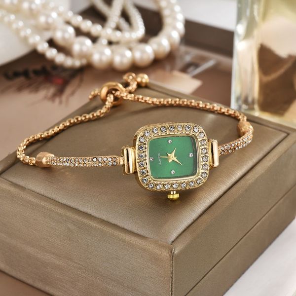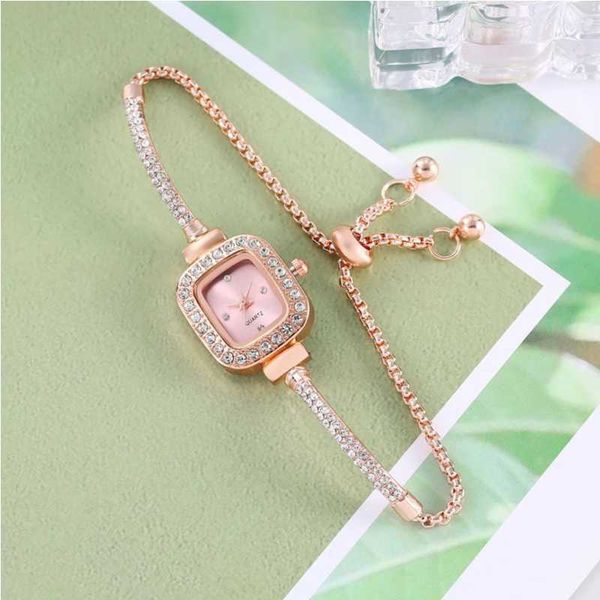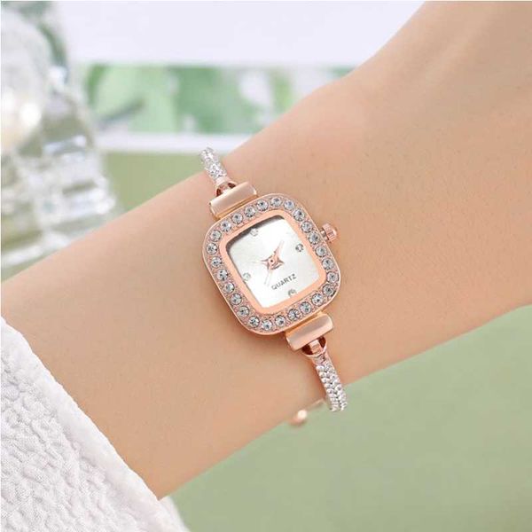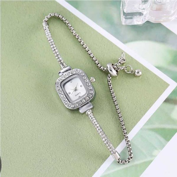 Temperament Drawstring Design Compact Square Diamond Set Fashion Temperament Lazy Bracelet Watch Women's Watch