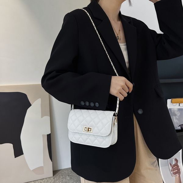 Cross border diamond lattice solid color chain small square bag 2023 new trend fashion shoulder bag simple foreign style crossbody bag for women