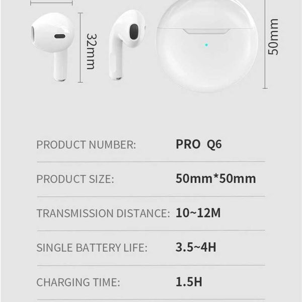 J6 Pro4 Pro6 Wireless Bluetooth Earphones 5.0 Stereo TWS Dual ear Sports 5th Generation Sports Earphones