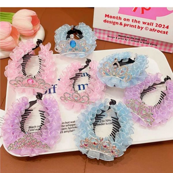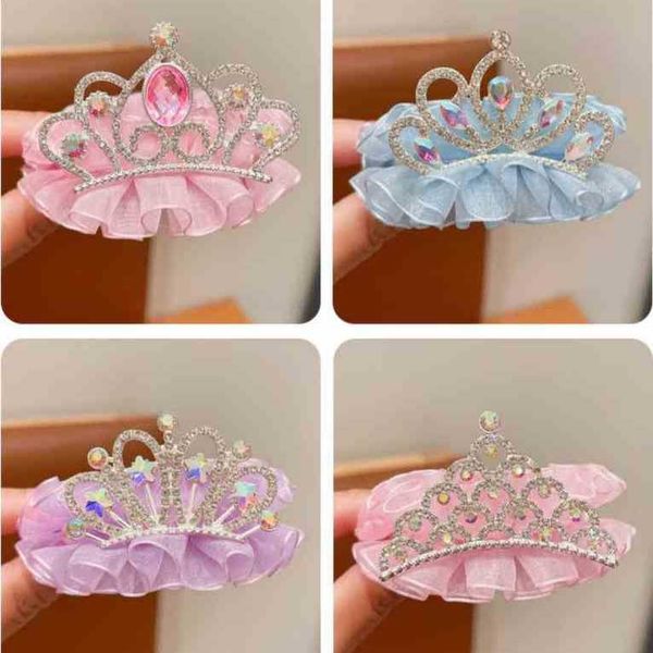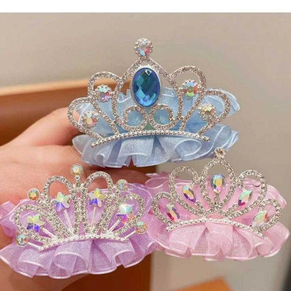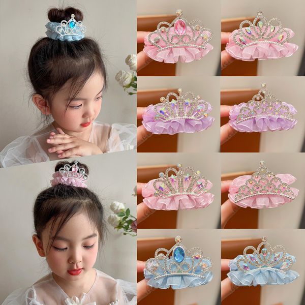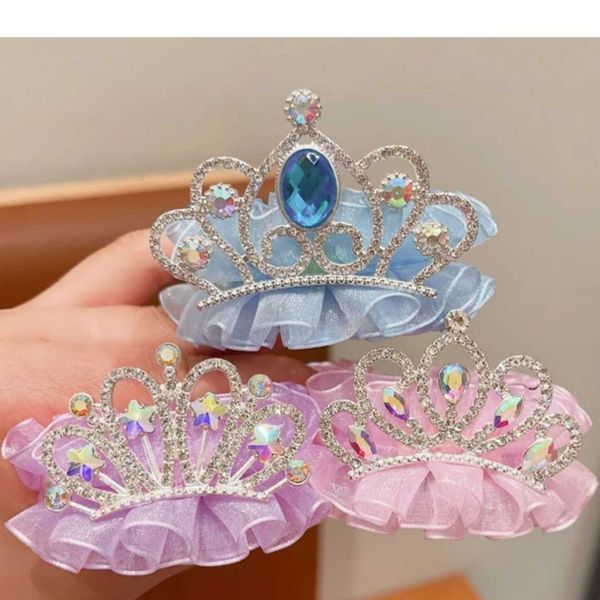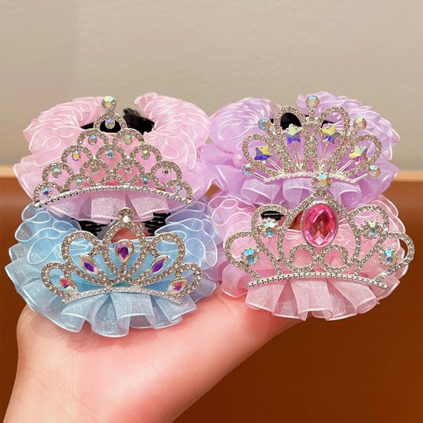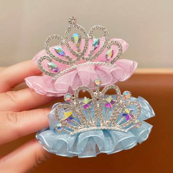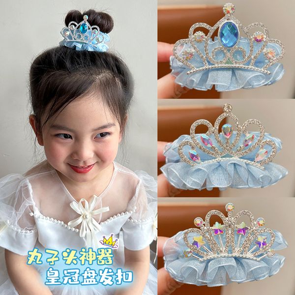 Children's crown headdress hair buckle hair artifact girl rhinestone yarn hairpin girl back of the head ponytail buckle grab clip