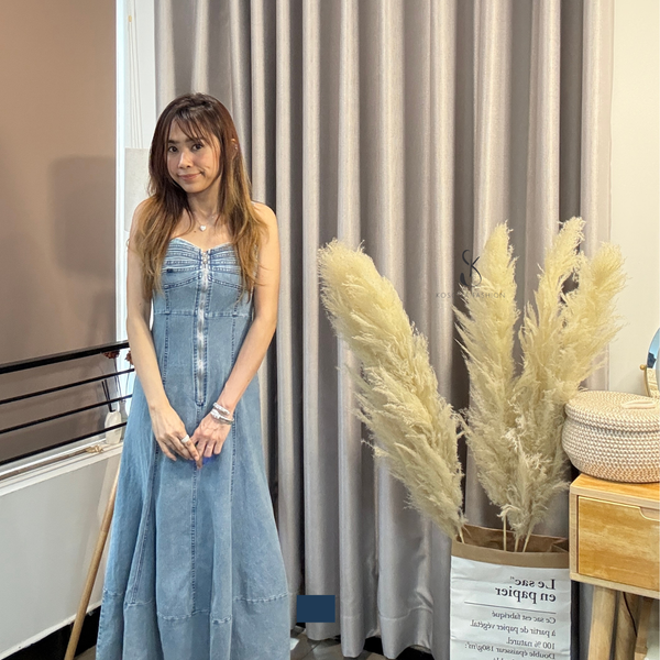 韩版时尚百搭吊带牛仔连衣裙女设计感拉链抹胸收腰显瘦荷叶边长裙