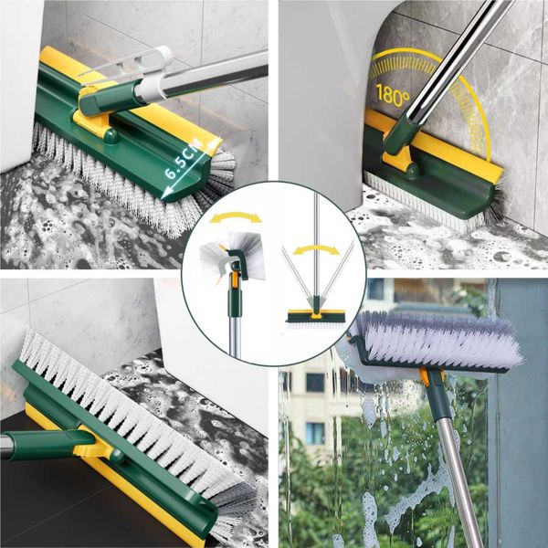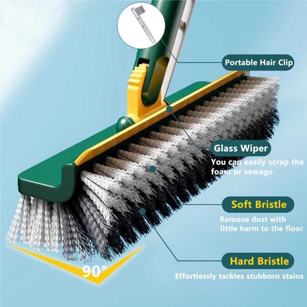 【Improved 3-in-1 Floor Scrub Brush】The ultimate floor scrub brush! Combining a double-sided scrub brush with a built-in scraper, you can easily remove dirty water after brushing the floor. Thanks to the combination of tough bristles and rubber scrapers, say goodbye to stubborn dirt easily.