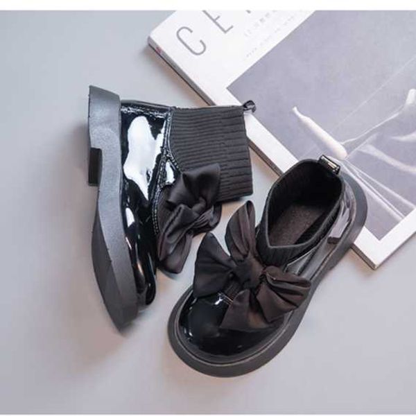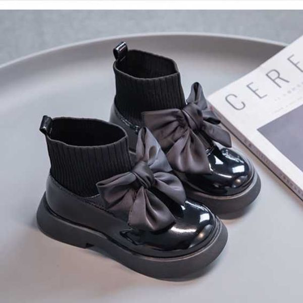 Girls socks shoes 2024 autumn new style little girl princess shoes black small leather shoes little girl single shoes Korean version short boots