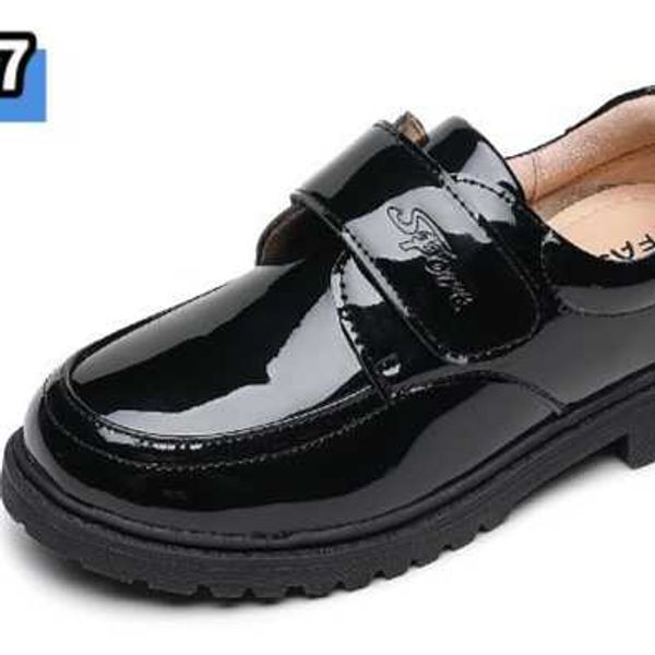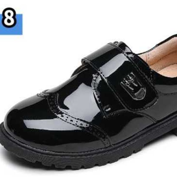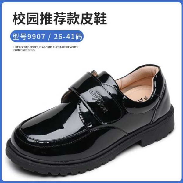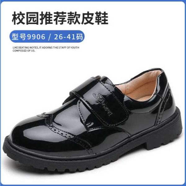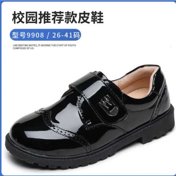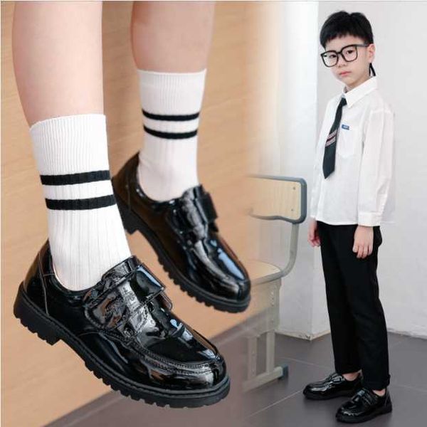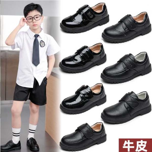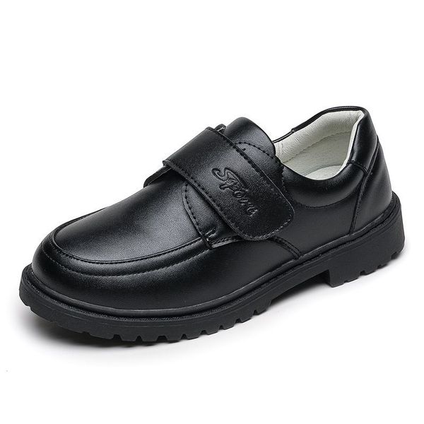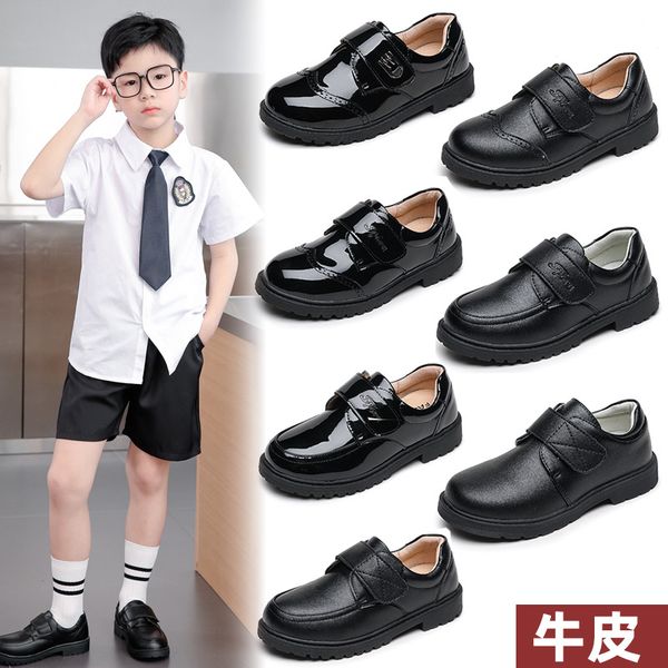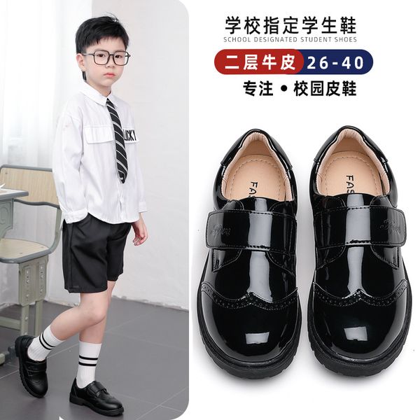 Boys black two-layer leather shoes student Velcro British style small leather shoes children's single shoes etiquette shoes school performance shoes