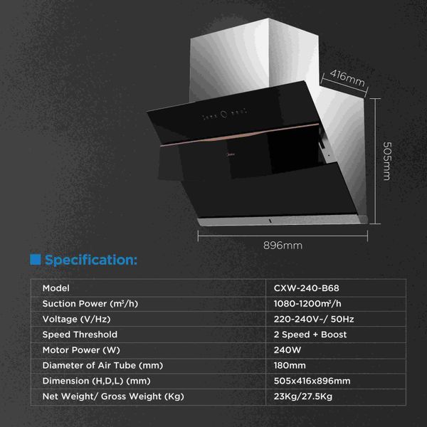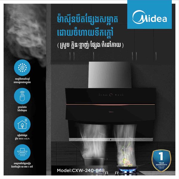 Midea Range Hood CXW-240-B68 Touch & Wave Control
