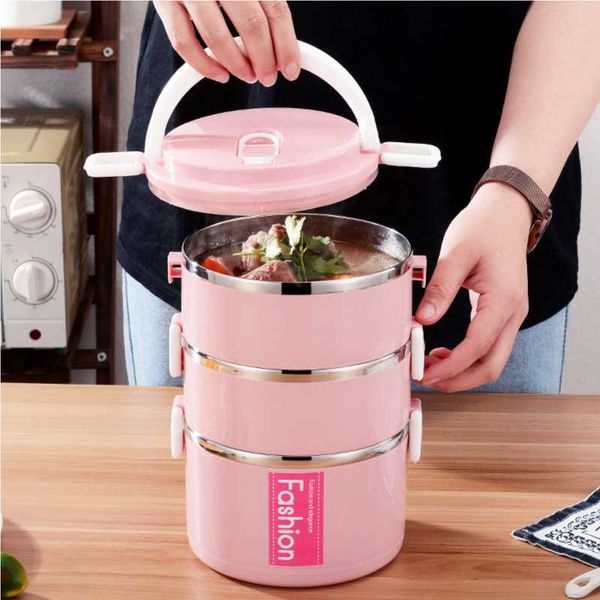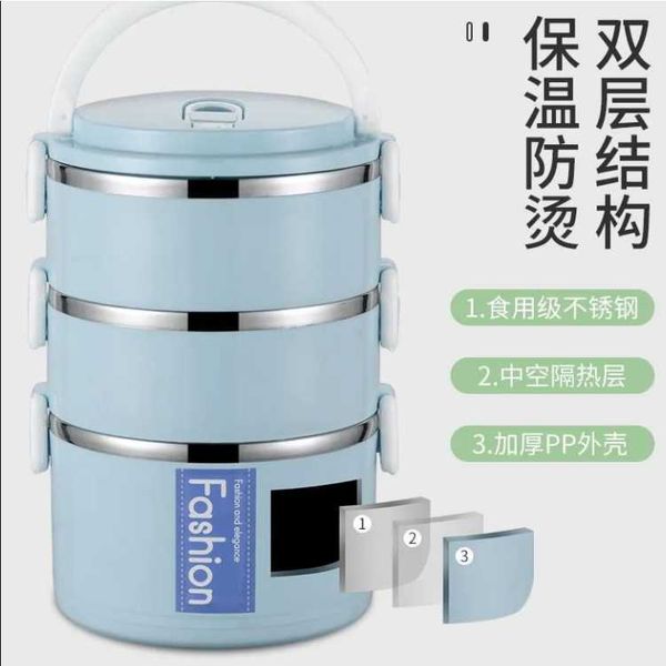 Stainless steel lunch box Students adult office workers large capacity multi-layer bento insulated bucket divided with cover lunch box 3-layer lunch box