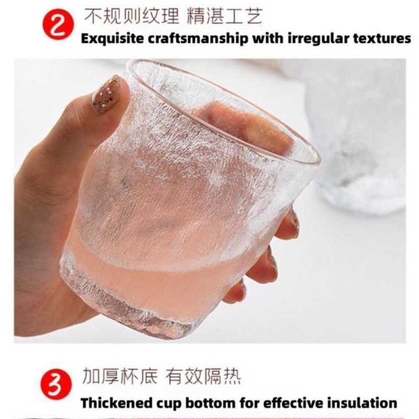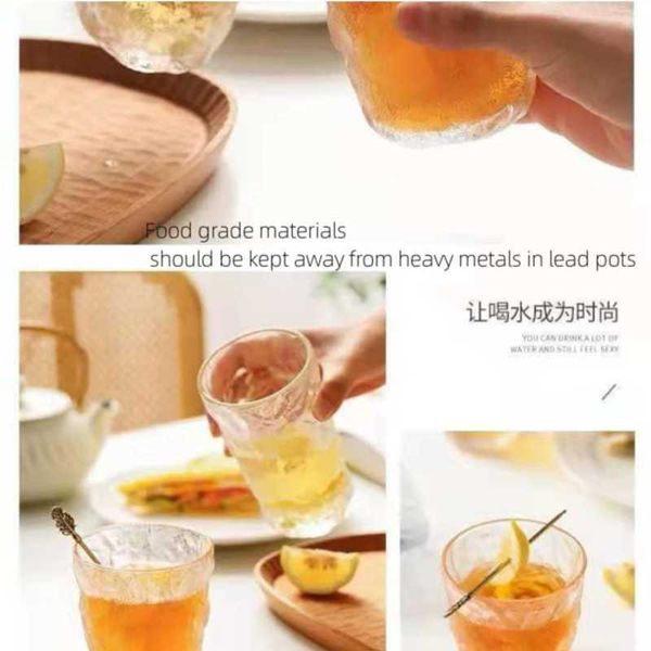 French Crystal Japanese Glacier Cup Glass Set (6 pieces) Tree Pattern Cup Wine Cup Women's Juice High Beauty Water Cup Coffee Cup Japanese Beer Cup