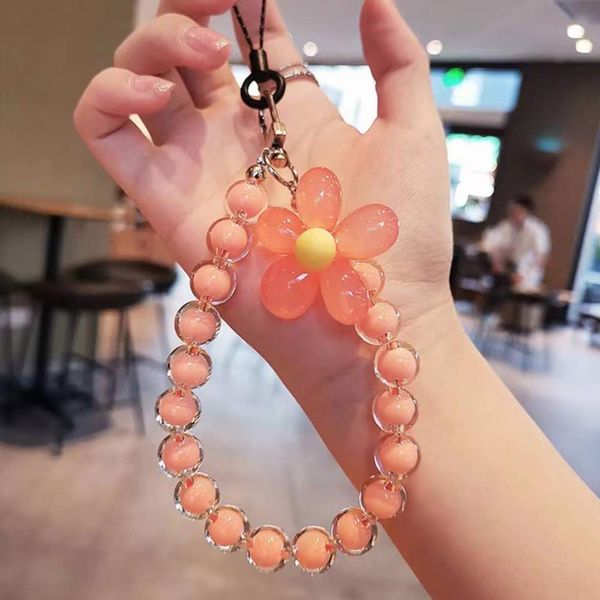 (បន្តោងដាក់ទូរស័ព្ទ)Macaron color beads petals mobile phone lanyard Japanese and Korean ins style handmade beaded flower mobile phone chain wrist strap