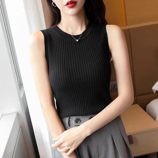 Women's camisole tops for spring and summer, knitted sweaters, short and versatile, shoulder straps, round neck, sleeveless, summer thin outer wear