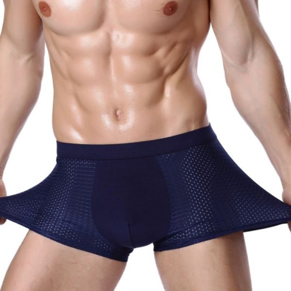 Men's autumn breathable underwear ice silk shorts modal mesh hollow boxer shorts mid-waist youth boxer shorts