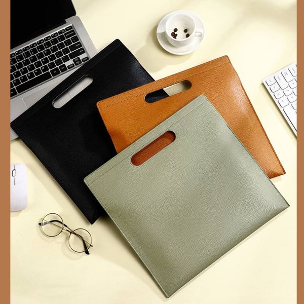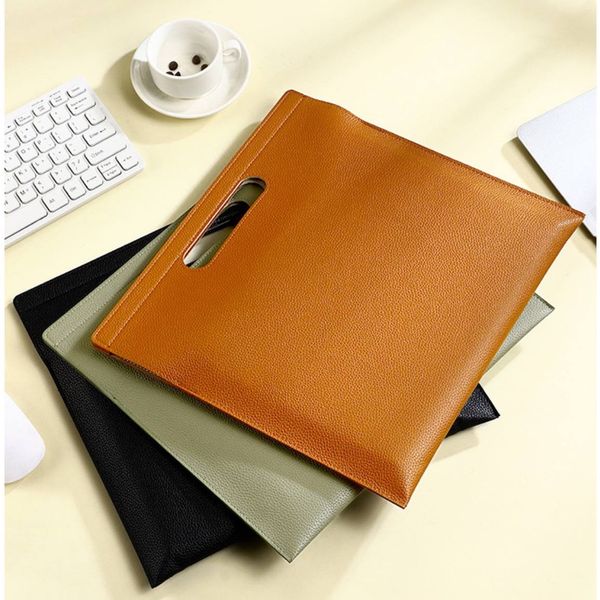Litchi Pattern Portable File Bag Leather Customized Large Capacity Waterproof Business Office Material Bag Portable Briefcase