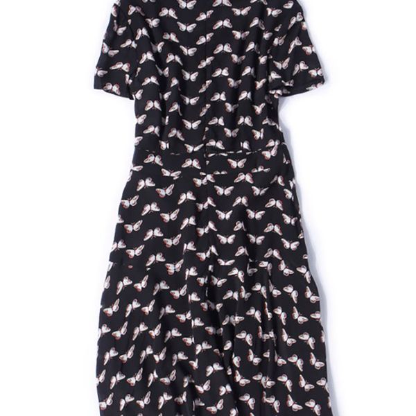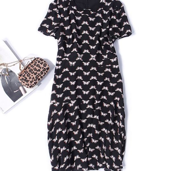 Women's New Fashion Short Sleeve Round Neck Butterfly Printed Ruffle Dress