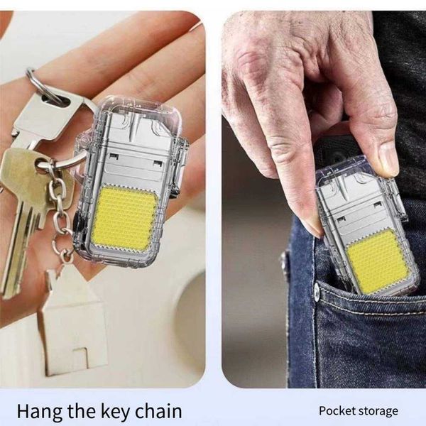 New portable keychain light, magnetic suction heating wire lighter, USB charging warning light, lighting flashlight, cigarette lighter