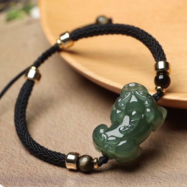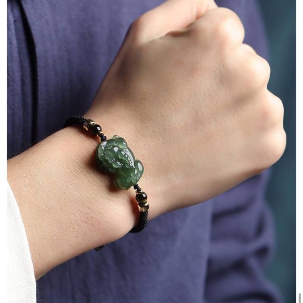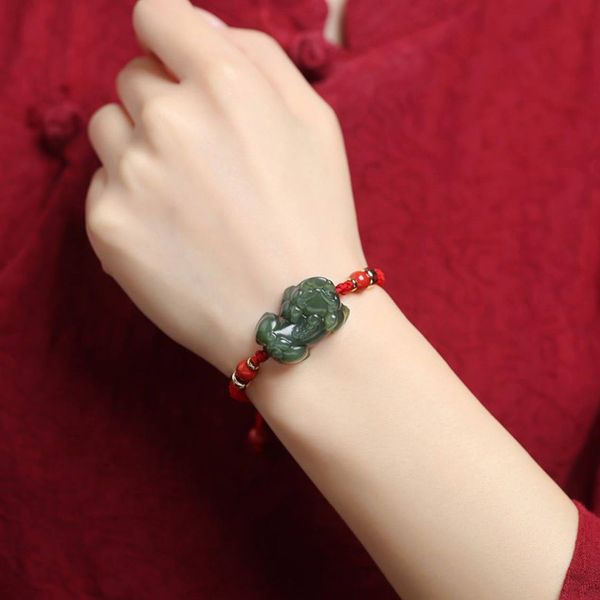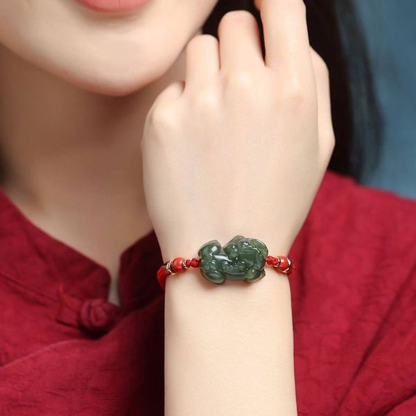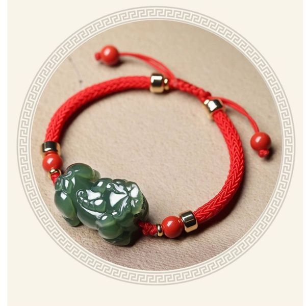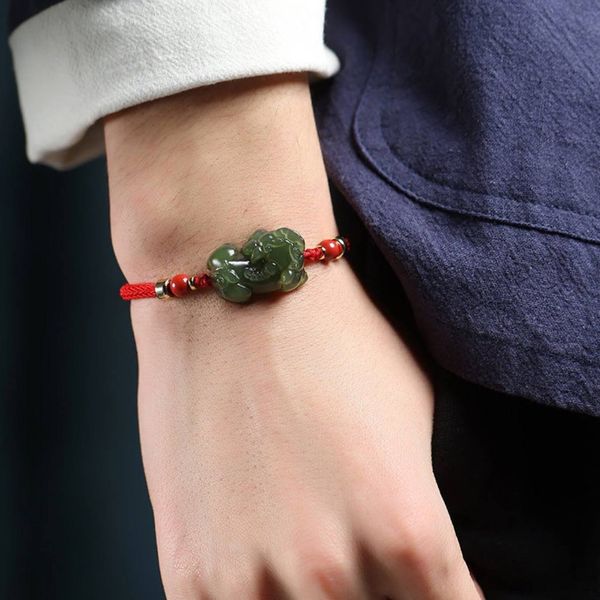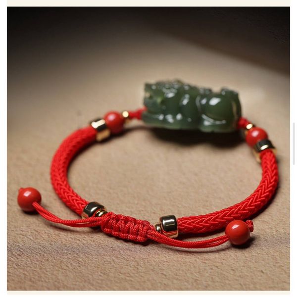 Hetian Jade Lucky Couple Small Pi Pixiu Bracelet women Picchu Dang Jade Bracelet Man Red Rope Woven Sapa Hand Rope