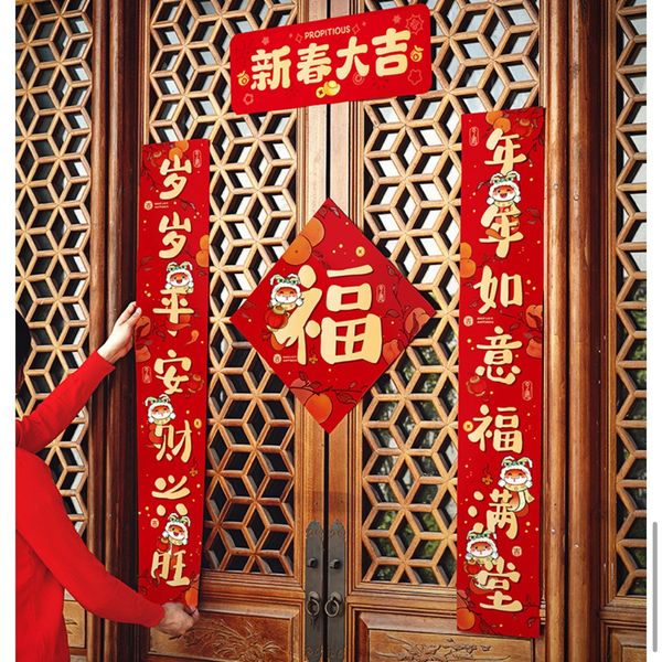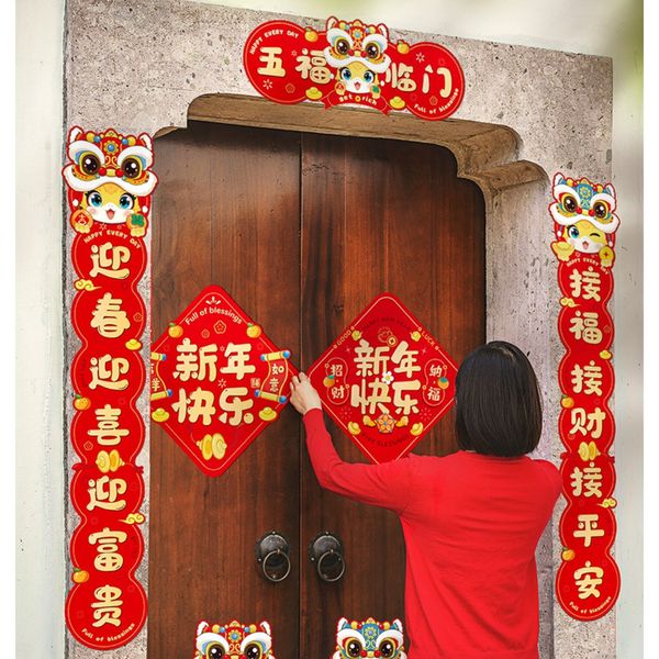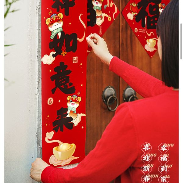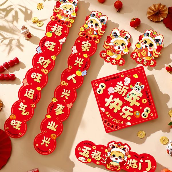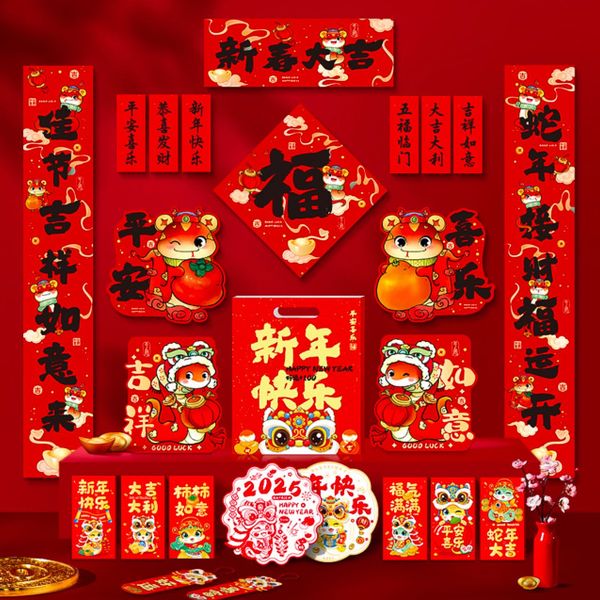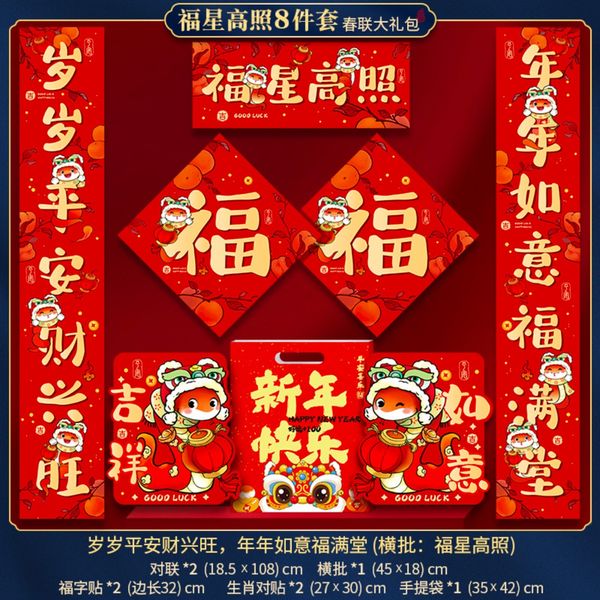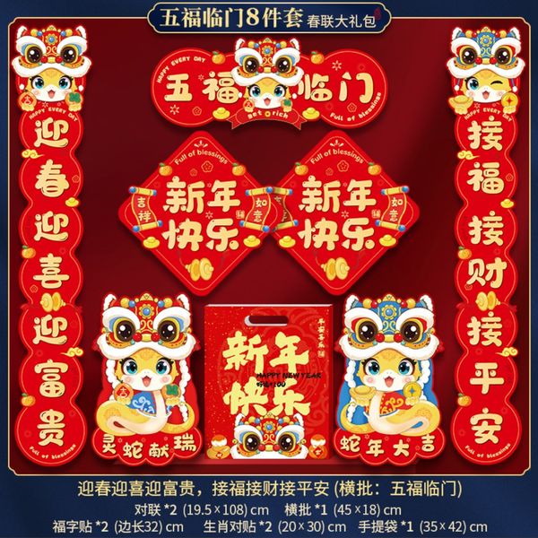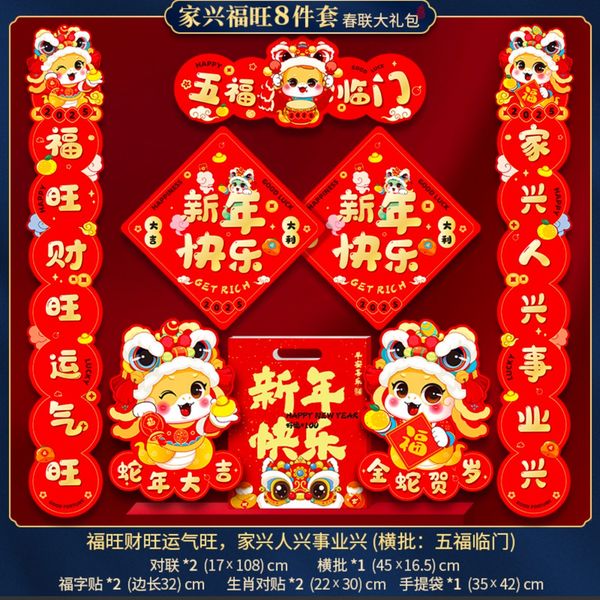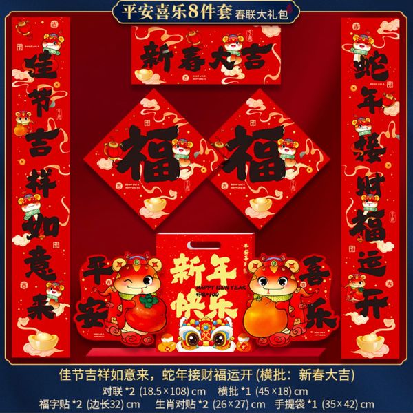 8Pcs New Year's couplet big gift bag 2025 new year of the snake Spring Festival couplet cartoon entrance door stickers lucky characters Spring Festival decorations