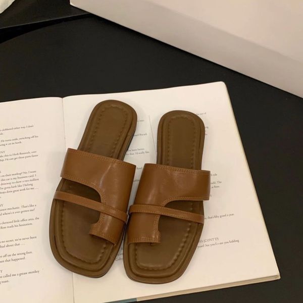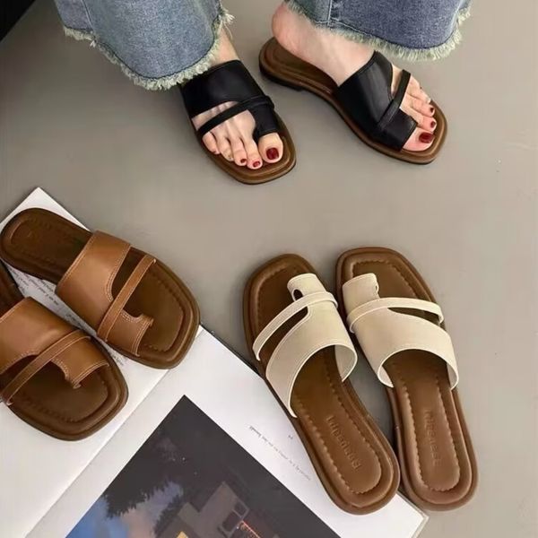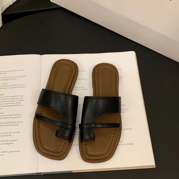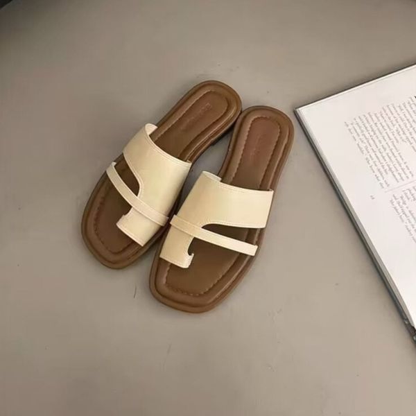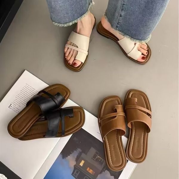 Women's Slim Toe Slippers Summer New Korean Style Retro Simple Slides Slip-on Sandals