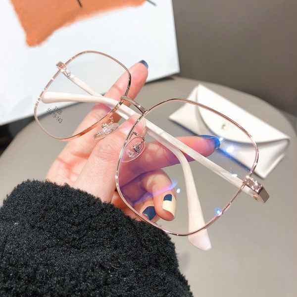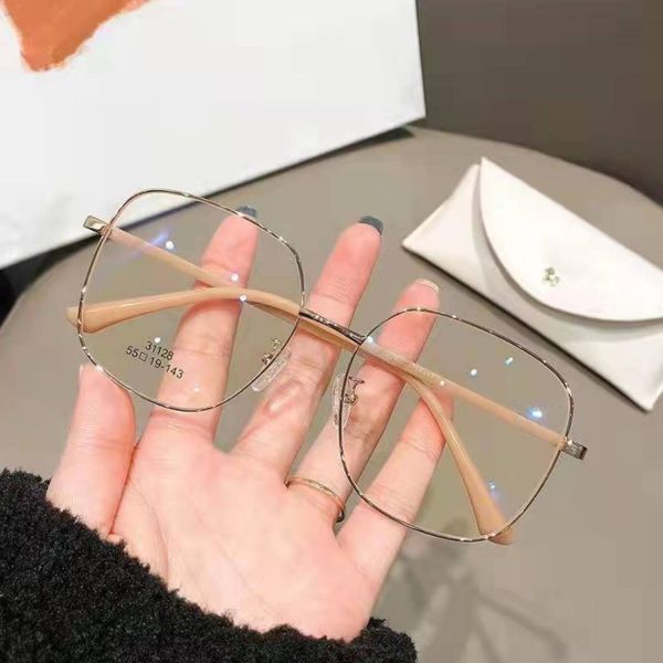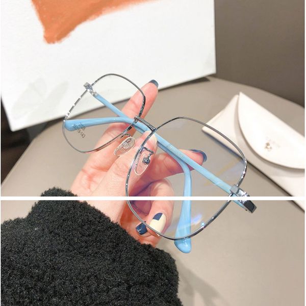New Fashion Women's Anti-blue Light Radiation Large Frame Myopia Glasses Metal Frame Face Slimming Ins Style Optical Glasses