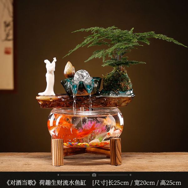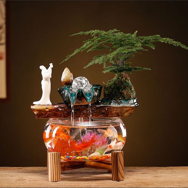 Creative Water Ornaments Living Room Study Office with Light Circle Small Household Transparent Wealth-making Fish Tank Chinese Landscape home decor