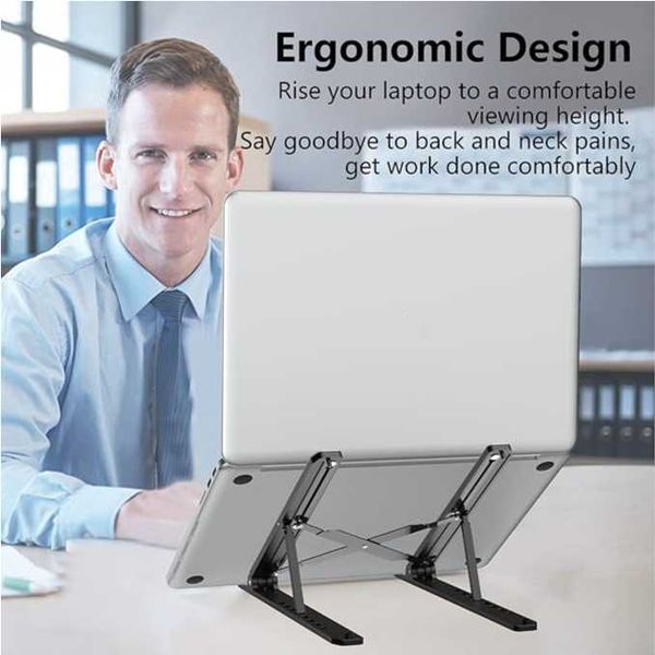 Adjustable and ergonomically designed, the laptop stand creates the perfect eye level for your laptop, allowing you to maintain a stable posture and reduce neck fatigue, back pain, and eye strain. It is very comfortable to work at home, in the office, and outdoors.