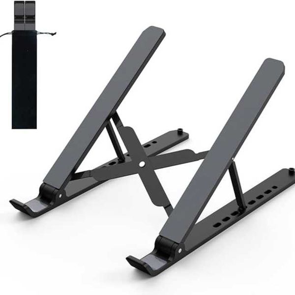 Desktop laptop stand, adjustable laptop stand ABS+silicone foldable portable laptop stand, ventilated cooling laptop stand, suitable for laptops, tablets - black