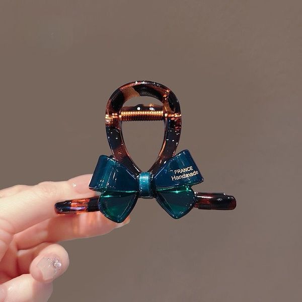 Korean Style Niche Design Sense Contrast Color Bow Medium Shark Clip Fashion Bronzing Letter Half Tie Hair Grab Clip Hairpin