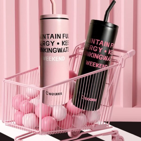 New black and powder couple high-value thermos cup simple stainless steel portable suction cup printable