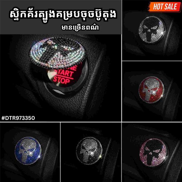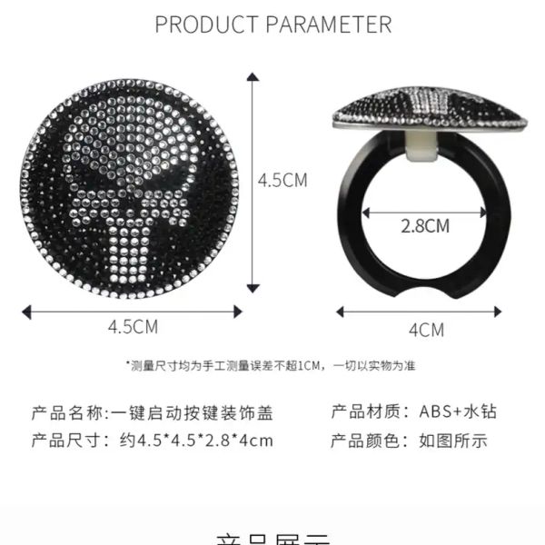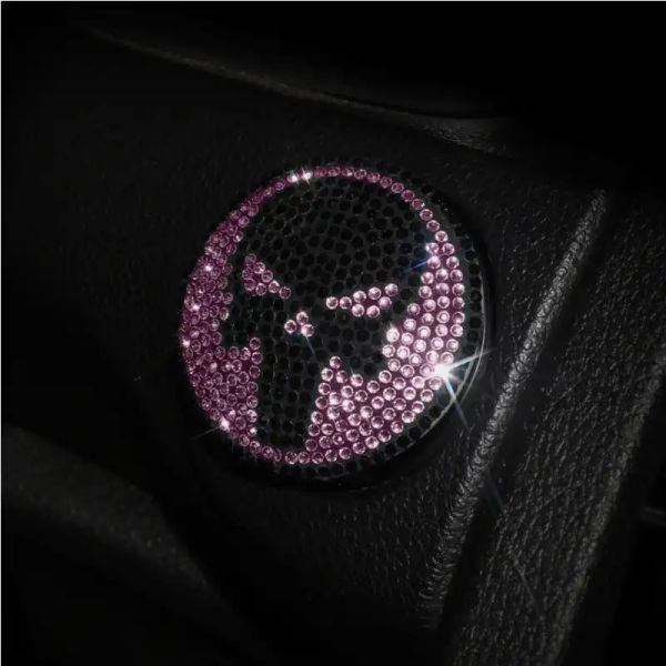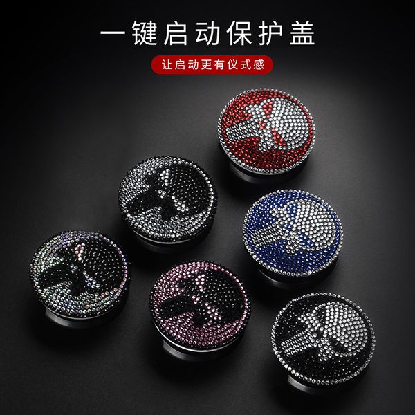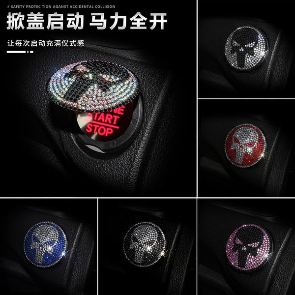 Diamond car one-button start decorative cover Punisher car interior modification accessories car start protective cover sticker