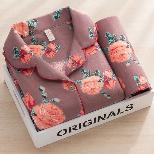 100% pure cotton high-end pajamas Women's Spring and Autumn long-sleeved two-piece Sweet fashion autumn and winter home wear