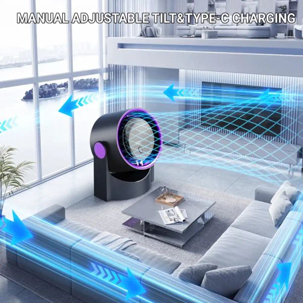 ? USB charging: This fan is conveniently powered through USB and is very suitable for desktop computers, offices, and even camping trips. It has flexibility in placement and use.