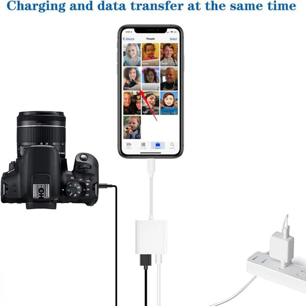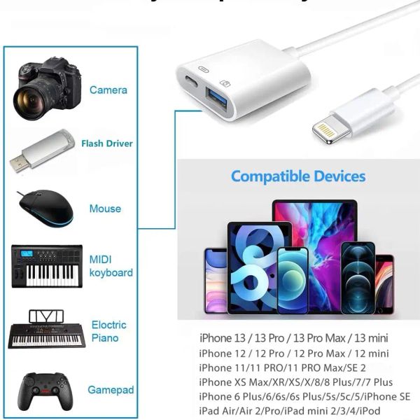 Apple Lightning to USB Camera Adapter with Charging Port, USB 3.0 OTG Data Cable, Suitable for iPhone/iPad to Connect Card Reader, USB Flash Drive, USB Drive, Keyboard, Mouse, Hub, etc, MIDI, plug and play