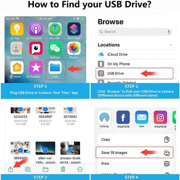 Kind reminder: If there is no display when inserting a USB flash drive or camera, please do not worry. Just find 'Files' on the desktop and click' Browse 'to see the USB drive on your iPhone.