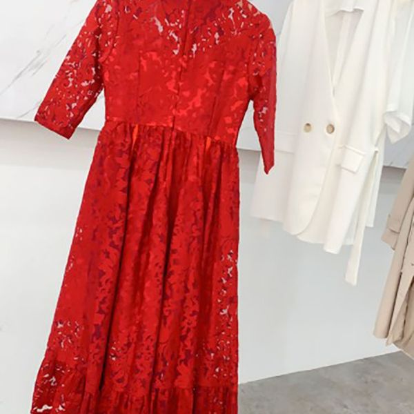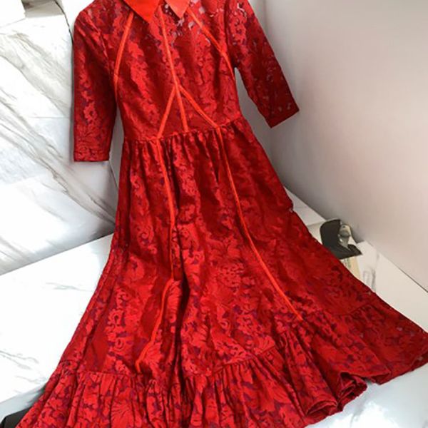Women's New Summer Fashion Long Sleeve Polo Collar Floral Ruffle Dress