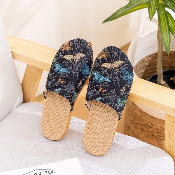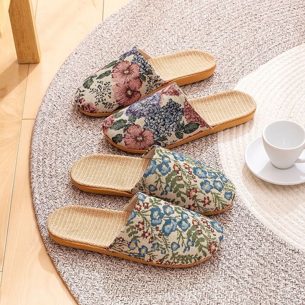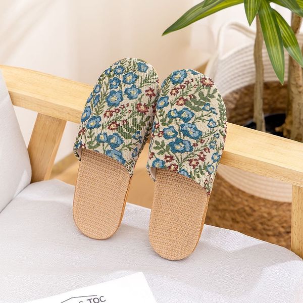 Summer New Embroidered Home Wooden Floor Linen Slippers Women's Light Breathable Casual Indoor Soft Bottom Sandals