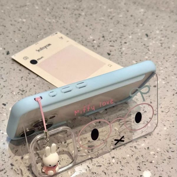 Korean Style ins Style English Blue Bow Eyes Miffy Rabbit Suitable for Iphone16Promax New iPhone 15 Pro Max Apple 14Pro Mobile Phone Case 13 All-Inclusive Anti-Fall Protective Cover