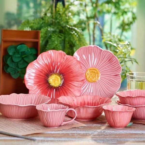 Petal Set Ceramic Tableware Ins Style Household Dish Plate Snack Plate Cake Plate Office Afternoon Tea Cup Flower Bowl