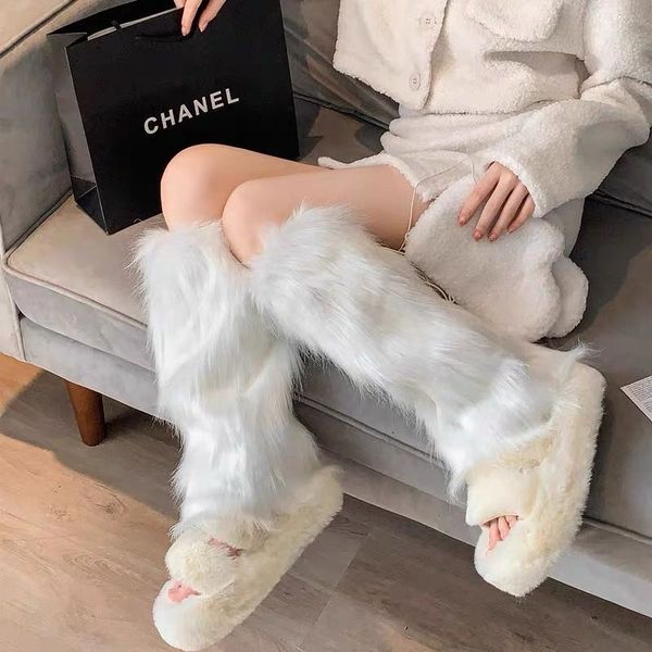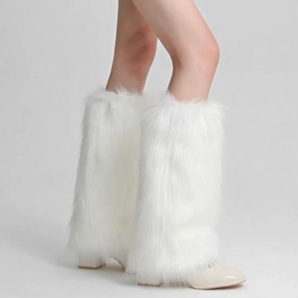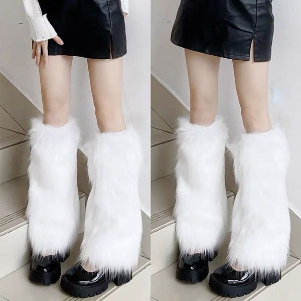 Faux Fur Leg Warmers Boot Covers Y2K Goth White Furry Leg Warmers Lady Plush Jk Knee-length Hipster Warm Sock Fashion Socks