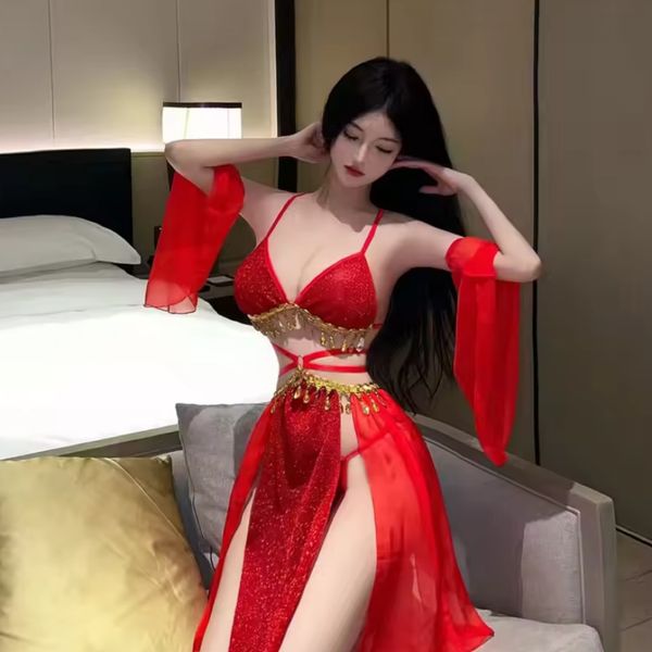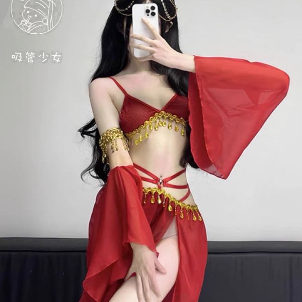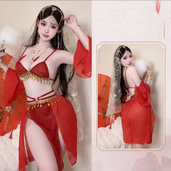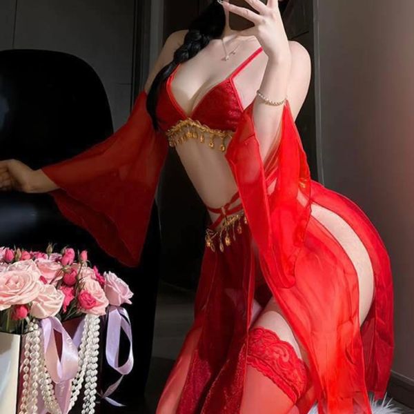 Women Sexy Fantasy Princess Lingerie Full Set Ancient Hanfu Pure Desire Super Fairy Tie Hanfu Dress Set Erotic Underwear Costume