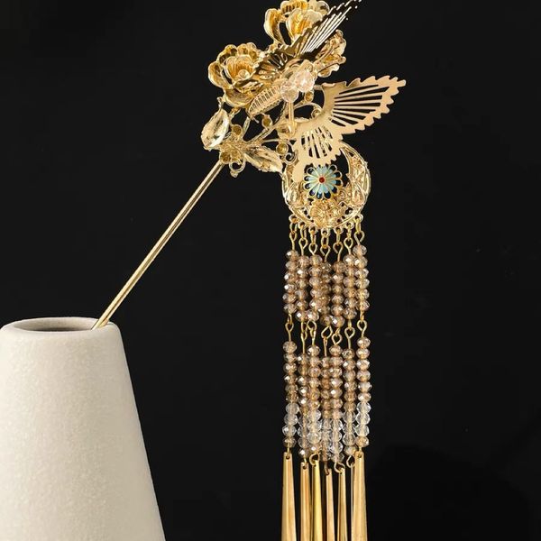 Butterfly peony tassel hairpin exquisite new Chinese style step-shaking retro high-end ancient costume hairpin hair accessories
