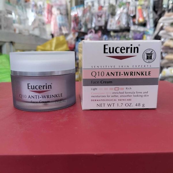 Eucerin Q10 Anti-Wringle Face cream ប្រើជារៀងរាល់ពេលព្រឹកលើស្បែកស្អាត។ លាបលើមុខ ក និងទ្រូង។ ម៉ាស្សាថ្នមៗឲ្យចូលទៅក្នុងស្បែកអស់ ហើយចាំលាបឡេការពារកម្តៅថ្ងៃតាមក្រោយណាបងៗ។ វាជួយពន្យាភាពចាស់ កាត់បន្ថយស្នាមជ្រៀវជ្រួញ ស្នាមអុចខ្មៅបានល្អខ្លាំងមែនទែន