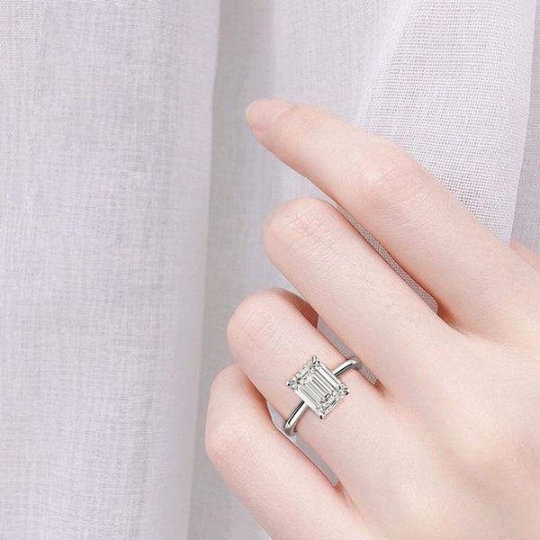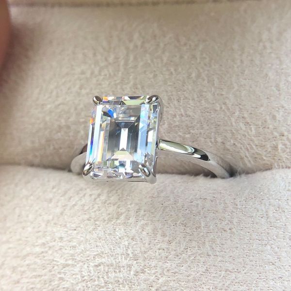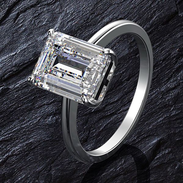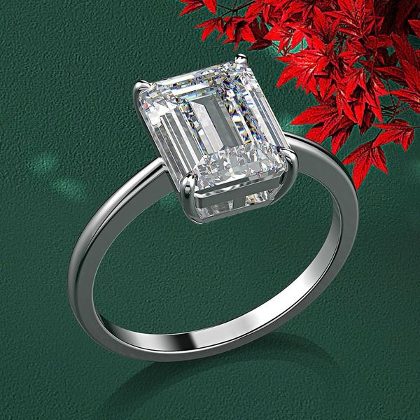 High luxury jewelry simple fashion simulation Diamond rectangular Chamfering high carbon Diamond 4 karat ring